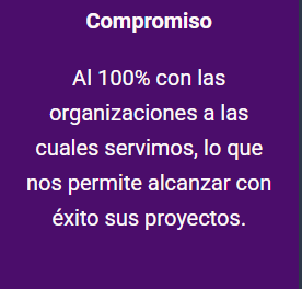 Compromiso Al 100% con las organizaciones a las cuales servimos, lo que nos permite alcanzar con éxito sus proyectos.