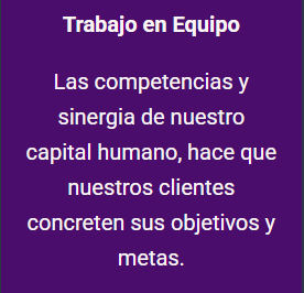Las competencias y sinergia de nuestro capital humano, hace que nuestros clientes concreten sus objetivos y metas.